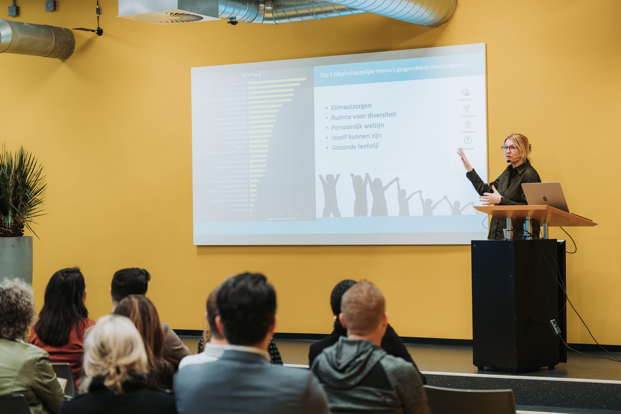 On Tuesday, February 27, Eveline Crone and the YoungXperts team visited Albeda mbo. During the event, Crone gave an inspiring lecture on polarization and inequality of opportunities. YoungXperts researchers Kayla Green and Yara Toenders handed over the manifesto to the board of directors of Albeda, teachers and all other attendees in the room.